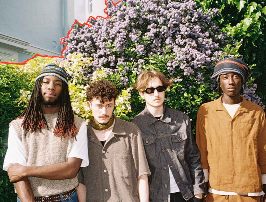 Few encapsulate the sound of London today as eloquently as the rising, genre-defying four-piece comprising c-sé (keys), Linus Barry (guitar), Nicco Rocco (drums), and Teigan Hastings (tuba). On their debut EP Not Real People, they present themselves as a boundless musical experiment, where their upbringings in different corners of the capital collide – from DIY jam sessions in East London to the reggae that bleeds from shop speakers into Brixton Market, and the grime and drill ricocheting from their peers’ earphones. Now signed to the legendary jazz label Brownswood Recordings, they have already attracted the attention of industry heavyweights.