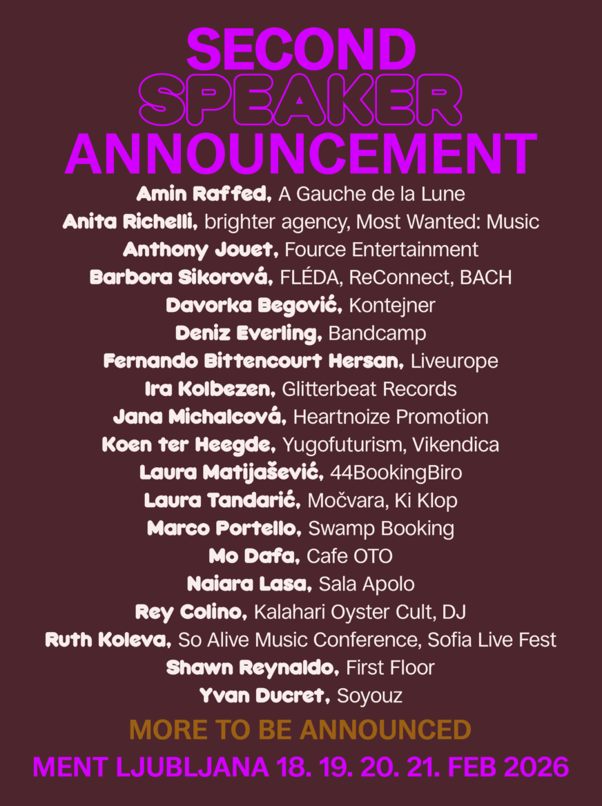 Deniz Everling (Bandcamp) bo predstavil razvoj Bandcampa, enega najpomembnejših digitalnih ekosistemov za glasbo v letu 2026. Ira Kolbezen (Glitterbeat Records) se pridružuje pogovoru o izdajanju glasbe in gojenju odnosov znotraj širše ekipe, ki skrbi za kariero glasbenika.