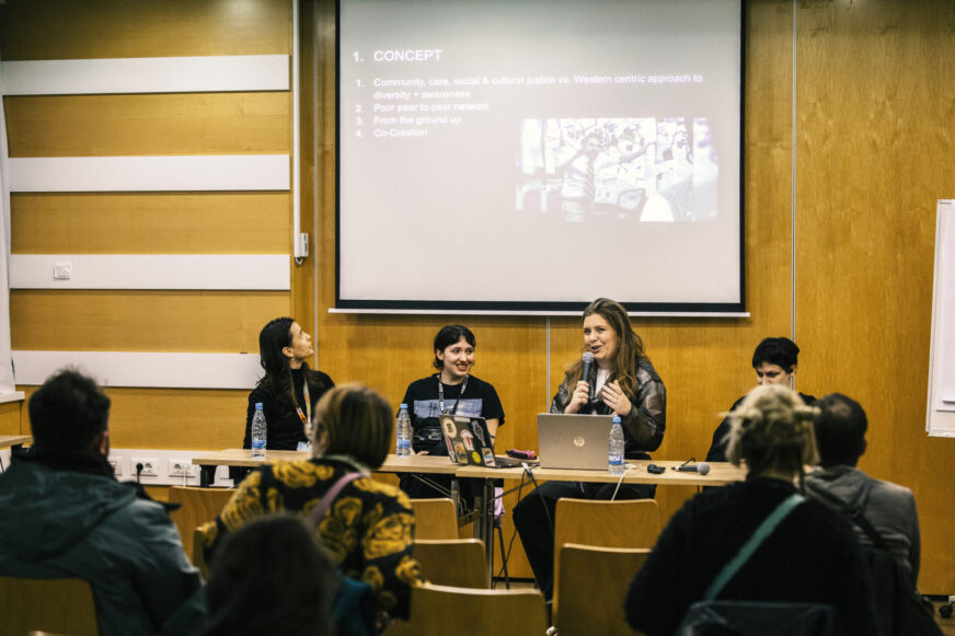 KOMUNA se nahaja v pritličju z vhodom na nasprotni strani info točke Kina Šiška in ponuja intimen, butični prostor za panele in intervjuje. V prvem nadstropju je GALERIJA KAMERA, namenjena promociji in podpori vizualnim umetnikom ter mlajšim generacijam. Med festivalom bo gostila razstavo appointMENT in številne sprejeme.